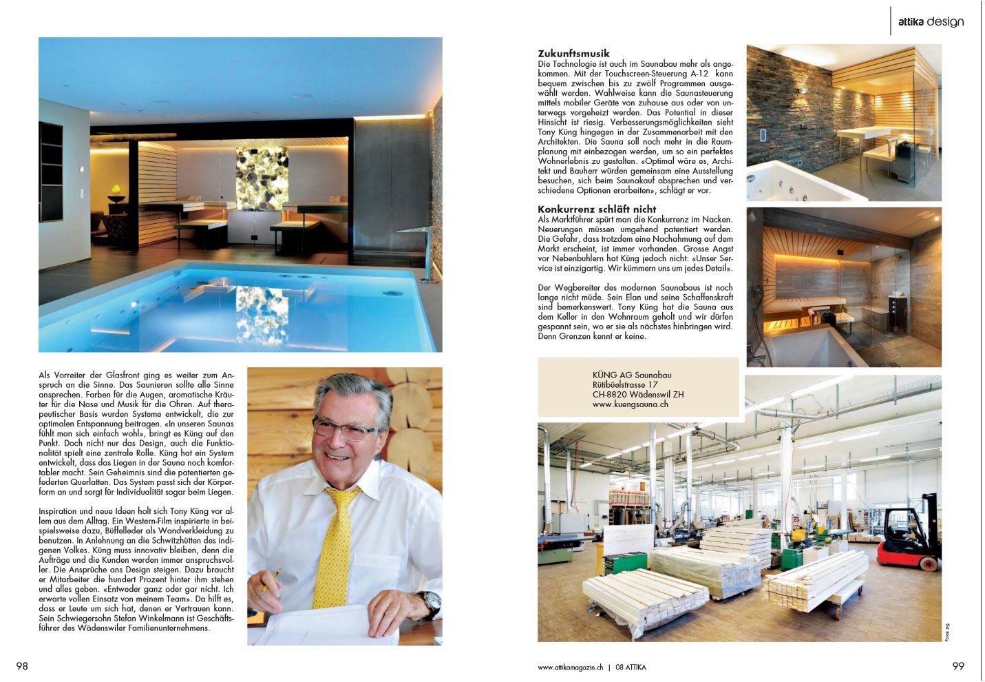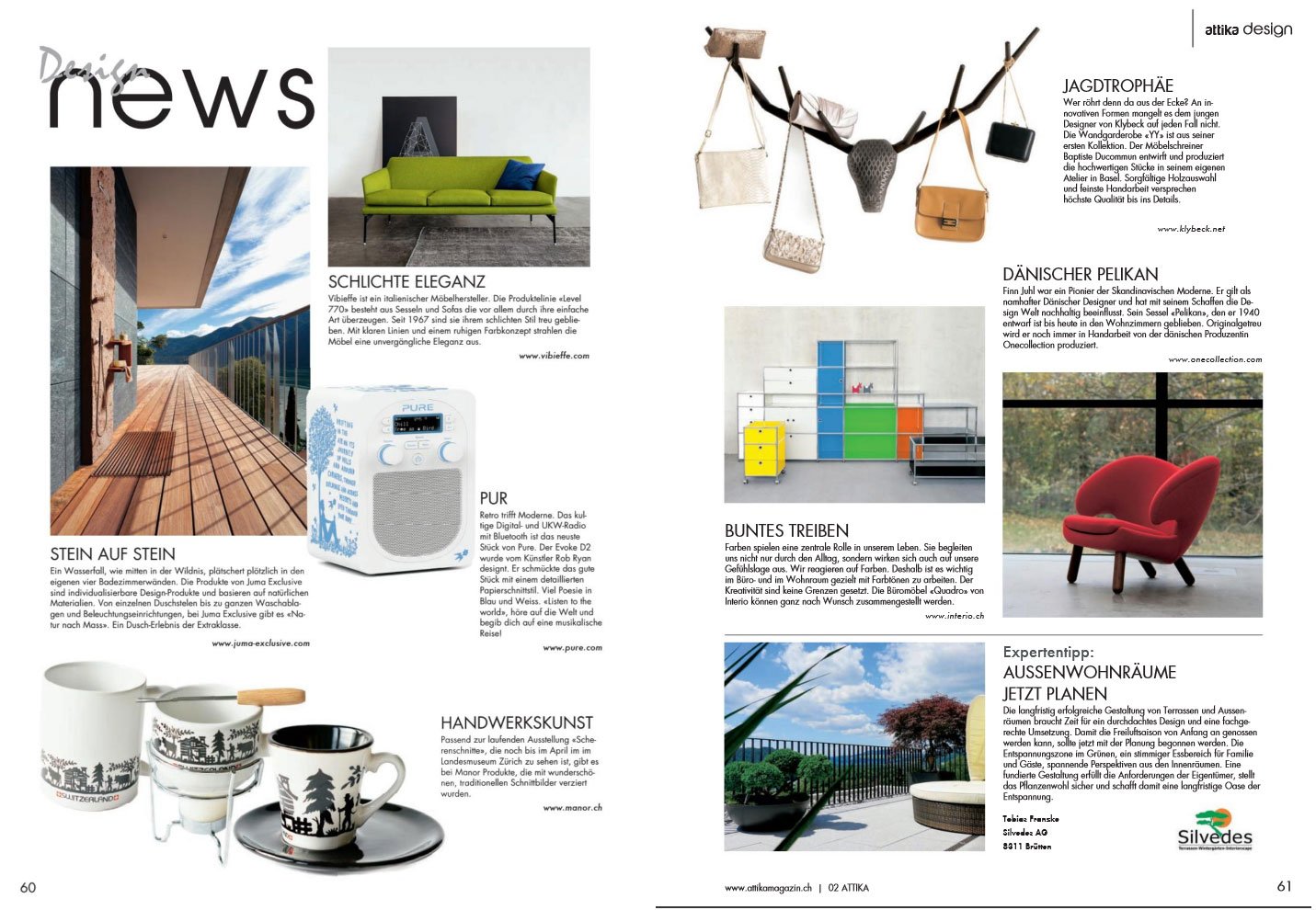 attika – Ein Magazin auf höchstem Niveau – und das bereits seit mehr als 12 Jahren! Das Magazin ist konzipiert für all diejenigen, die das Aussergewöhnliche, das Schöne und das Exklusive suchen. Attika berichtet aus der Wirtschaftsregion Zürich und seinen angrenzenden Regionen in den Bereichen Leute, Lebensraum, Wohnen, Genuss, Autos, Beauty, Design, Architektur, Wirtschaft, Gesellschaft, Kultur, Freizeit, Reisen, Mode, Luxus, Wellness und Sport.