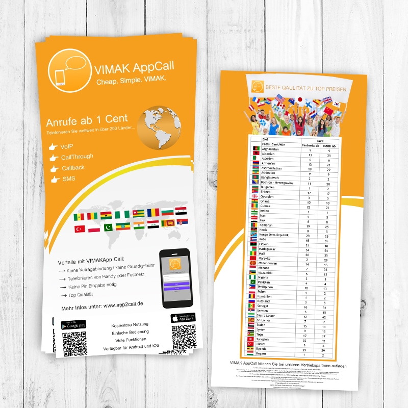 Für die VIMAK AppCall haben wir verschiedene Printmedien wie Flyer, Calling Cards und Web-Banners gestaltet.