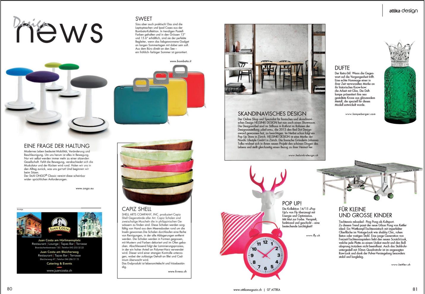 attika – Ein Magazin auf höchstem Niveau – und das bereits seit mehr als 12 Jahren! Das Magazin ist konzipiert für all diejenigen, die das Aussergewöhnliche, das Schöne und das Exklusive suchen. Attika berichtet aus der Wirtschaftsregion Zürich und seinen angrenzenden Regionen in den Bereichen Leute, Lebensraum, Wohnen, Genuss, Autos, Beauty, Design, Architektur, Wirtschaft, Gesellschaft, Kultur, Freizeit, Reisen, Mode, Luxus, Wellness und Sport.